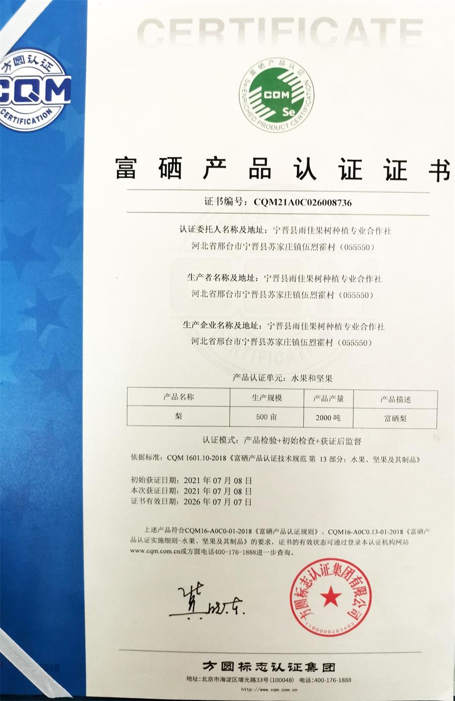 在寧晉縣,雨佳果樹種植專l業(yè)合作社負(fù)責(zé)人霍總向羅總和于總一行詳細(xì)介紹了果園品種分布,分批上市時(shí)間。雨佳合作社是該市智慧農(nóng)業(yè)應(yīng)用示范點(diǎn),產(chǎn)品多次獲得京津冀果品爭(zhēng)霸賽金獎(jiǎng)。在霍總的帶領(lǐng)下,雨佳合作社在通過歐盟質(zhì)量認(rèn)證體系基礎(chǔ)上又與中國(guó)地質(zhì)大學(xué)(武漢)國(guó)際硒科學(xué)與產(chǎn)業(yè)發(fā)展研究院合作,將有機(jī)、富硒、酵素三效合一,研發(fā)了富硒梨果產(chǎn)品,已經(jīng)連續(xù)兩年獲得第三方機(jī)構(gòu)的“富硒產(chǎn)品認(rèn)證證書”。去年有200余mu富硒梨果被香港某大型超市提前批量訂購(gòu)。非常巧合的是,今年香港客商也在同一天來到了霍總的富硒梨基地,商定今年的采購(gòu)計(jì)劃。